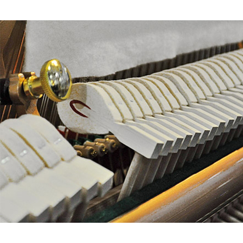 Все детали пианино прошли строгую проверку качества, а собран инструмент вручную опытными мастерами. Рипки пианино и фирменная двойная резонирующая дека сделаны из еловой древесины – это придает звуку, который извлекает инструмент, насыщенности и мягкости. Фирменная механика Ritmuller High Action позволяет клавишам реагировать даже на самое легкое прикосновение, а молоточки клавиш изготовлены из качественной древесины и покрыты головками из войлока – это добавляет и так прекрасному звуку пианино насыщенных обертонов. Сами клавиши пианино Ritmuller UP 110 R2 легкие, а нажатия на них плавные, так как эта часть инструмента произведена из легкой еловой древесины.