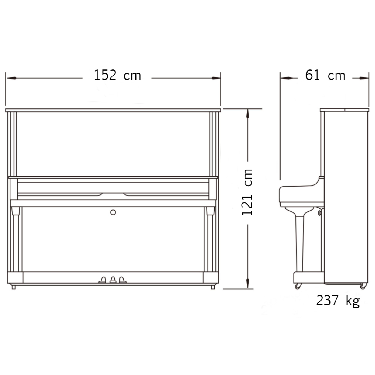Благодаря высоте 121 см, цельной еловой деке с высококачественным лаковым покрытием и 5 скелетным балкам сзади звучание B121 богатое и глубокое.