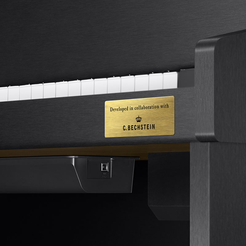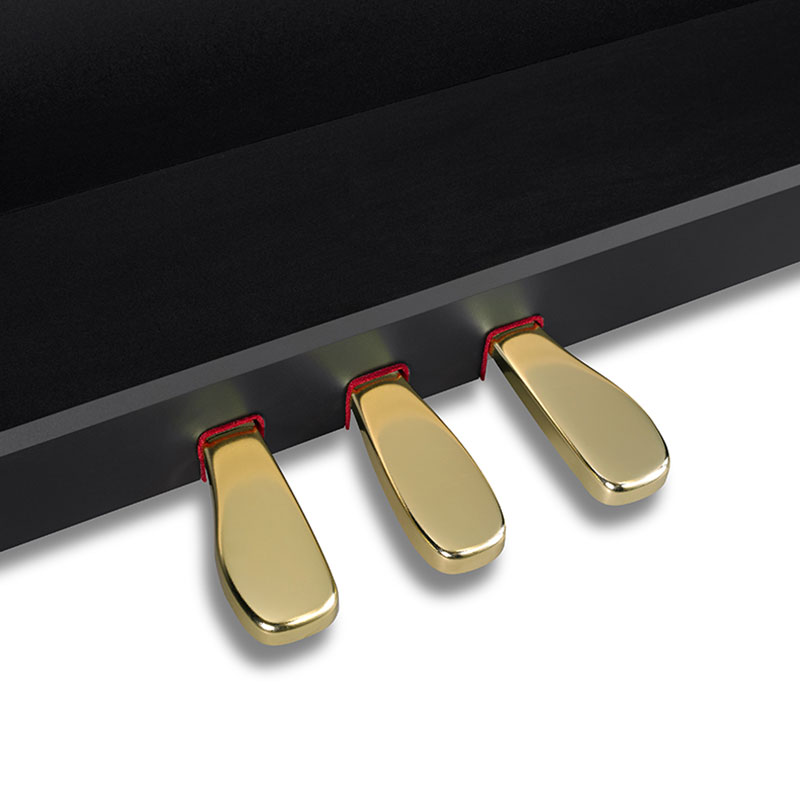 В модели предусмотрены все обучающие функции. Инструмент оборудован тремя встроенными педалями (софт, демпфер, состенуто), комплектуется пюпитром, сетевым адаптером и удобным держателем для наушников. Банкетка в комплект не входит и приобретается отдельно.
