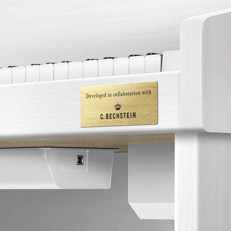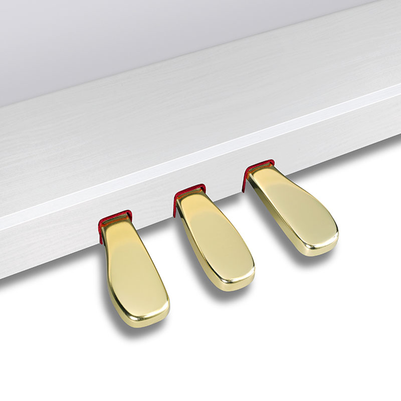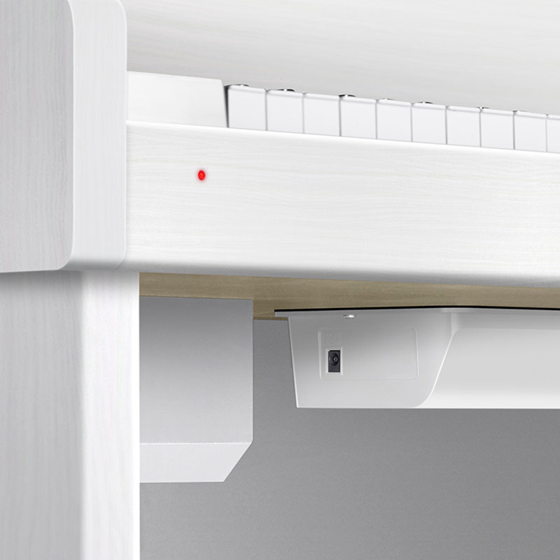 В модели предусмотрены все обучающие функции. Инструмент оборудован тремя встроенными педалями (софт, демпфер, состенуто), комплектуется пюпитром, сетевым адаптером и удобным держателем для наушников. Банкетка в комплект не входит и приобретается отдельно.