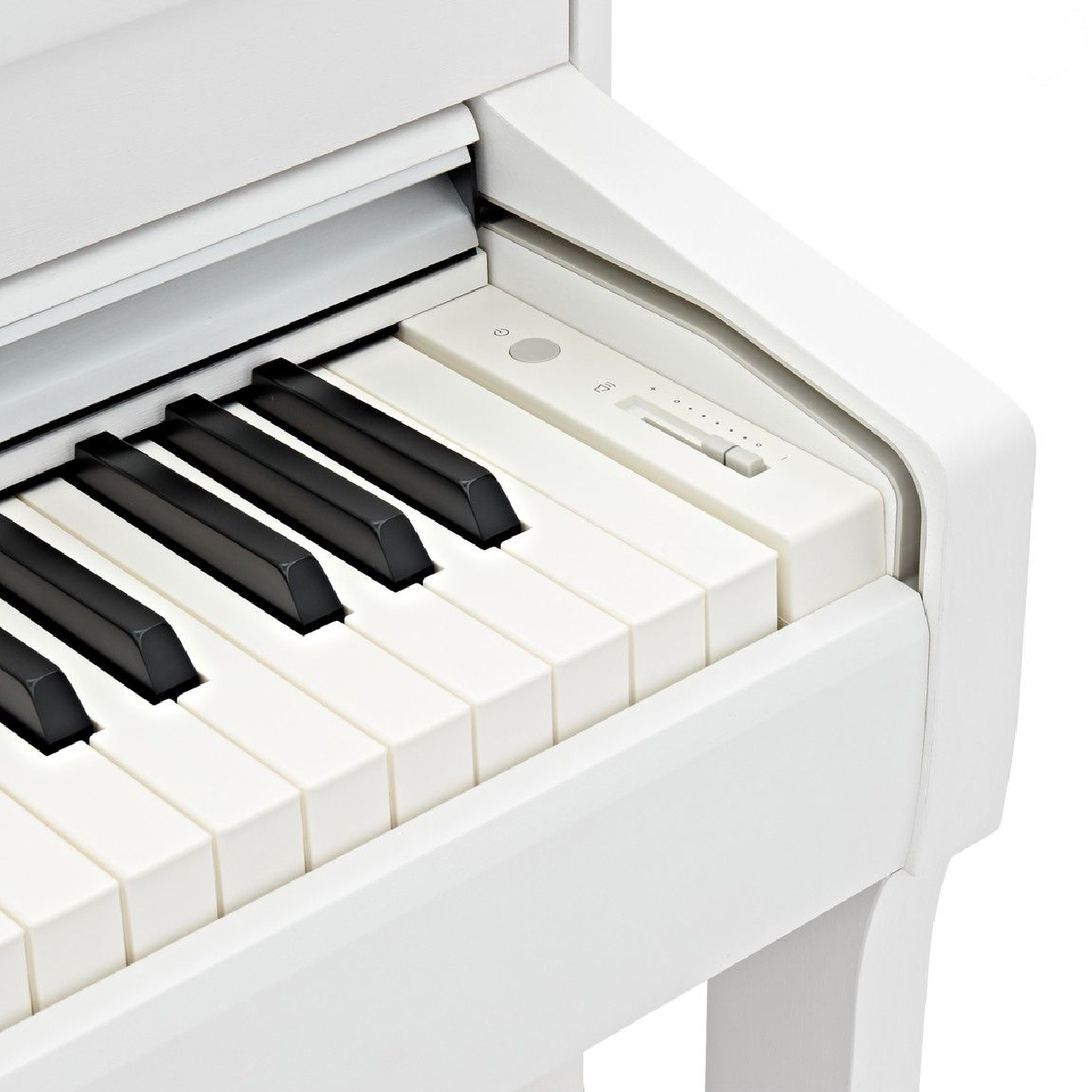 Клавиатура этой модели максимально полно имитирует клавиатуру настоящего акустического рояля. Взвешенные клавиши с тройными датчиками гибко отзываются на малейшее касание. Чувствительность к нажатию может быть отрегулирована пользователем, доступно пять уровней чувствительности, от наивысшей до максимально сниженной. Пианино оборудовано крышкой скользящего типа, которая защищает клавиши от скопления пыли.