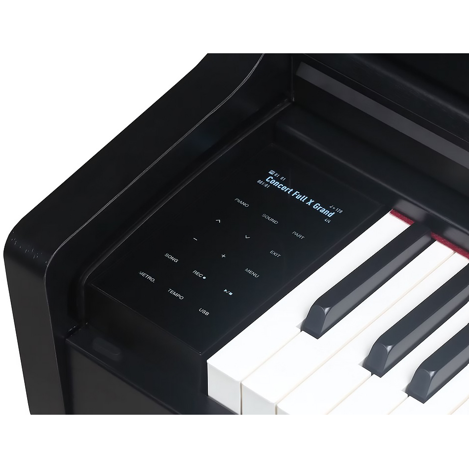 Звуковая палитра цифрового пианино Medeli UP405 создана благодаря технологии Medeli PurePiano Sound. В арсенале 40 высококачественных тембров, среди которых сэмплы лучших концертных роялей мира. Также предусмотрена музыкальная библиотека, состоящая из 100 композиций, которая позволяет экспериментировать с различными музыкальными стилями. Максимальная полифония инструмента достигает 256 голосов, что обеспечивает безупречную чистоту звучания даже в самых насыщенных и сложных музыкальных произведениях, без пропадания отдельных нот. Насыщенное и объёмное звучание обеспечивается мощной акустической системой мощностью 50 Вт. Яркий OLED-дисплей упрощает навигацию по функциям инструмента, делая управление интуитивно понятным и удобным.