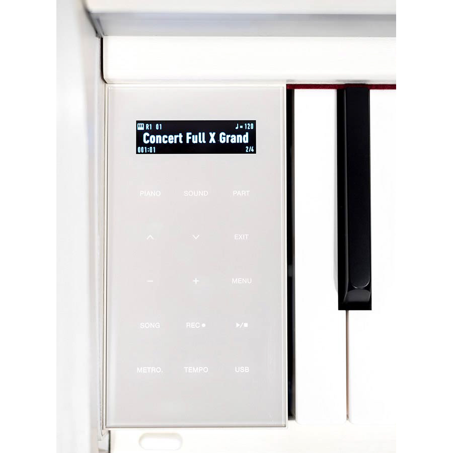 Звуковая палитра цифрового пианино Medeli UP405 создана благодаря технологии Medeli PurePiano Sound. В арсенале 40 высококачественных тембров, среди которых сэмплы лучших концертных роялей мира. Также предусмотрена музыкальная библиотека, состоящая из 100 композиций, которая позволяет экспериментировать с различными музыкальными стилями. Максимальная полифония инструмента достигает 256 голосов, что обеспечивает безупречную чистоту звучания даже в самых насыщенных и сложных музыкальных произведениях, без пропадания отдельных нот. Насыщенное и объёмное звучание обеспечивается мощной акустической системой мощностью 50 Вт. Яркий OLED-дисплей упрощает навигацию по функциям инструмента, делая управление интуитивно понятным и удобным.