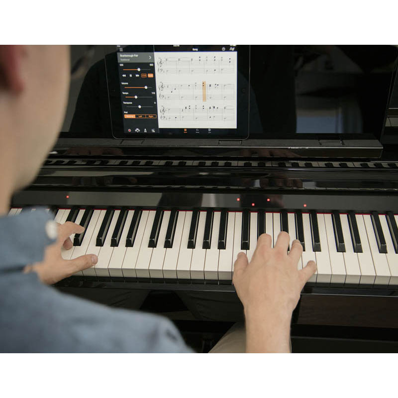 Хотите научиться играть свои любимые мелодии на пианино? Теперь это возможно благодаря Clavinova CSP! Просканировав аудиофайлы в музыкальной библиотеке смартфона, Yamaha Clavinova CSP-150 построит таблицу аккордов, выполнит переложение для фортепиано, а затем с помощью удобной функции Stream Lights будет показывать вам, какие клавиши надо нажимать, и когда.