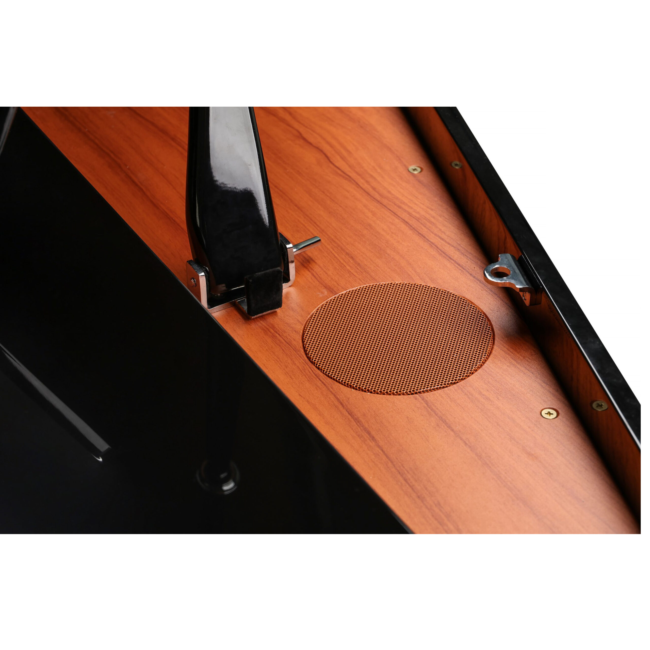 Kurzweil CUP-G1W оснащён интегрированной стереосистемой с 4 динамиками общей мощностью 50 Вт. Подключайте смартфон или планшет по беспроводной сети и воспроизводите музыку через встроенные динамики. Интуитивно понятный пользовательский интерфейс с ЖК-дисплеем обеспечивает лёгкий доступ ко всем функциям системы. Элегантно спрятанная под клавиатурой фронтальная панель I/O позволяет забыть о необходимости тянуться к задней части пианино. В инструменте предусмотрены USB-порты для подключения к компьютеру или мобильным устройствам, а также Bluetooth для беспроводной передачи аудио и MIDI-данных.