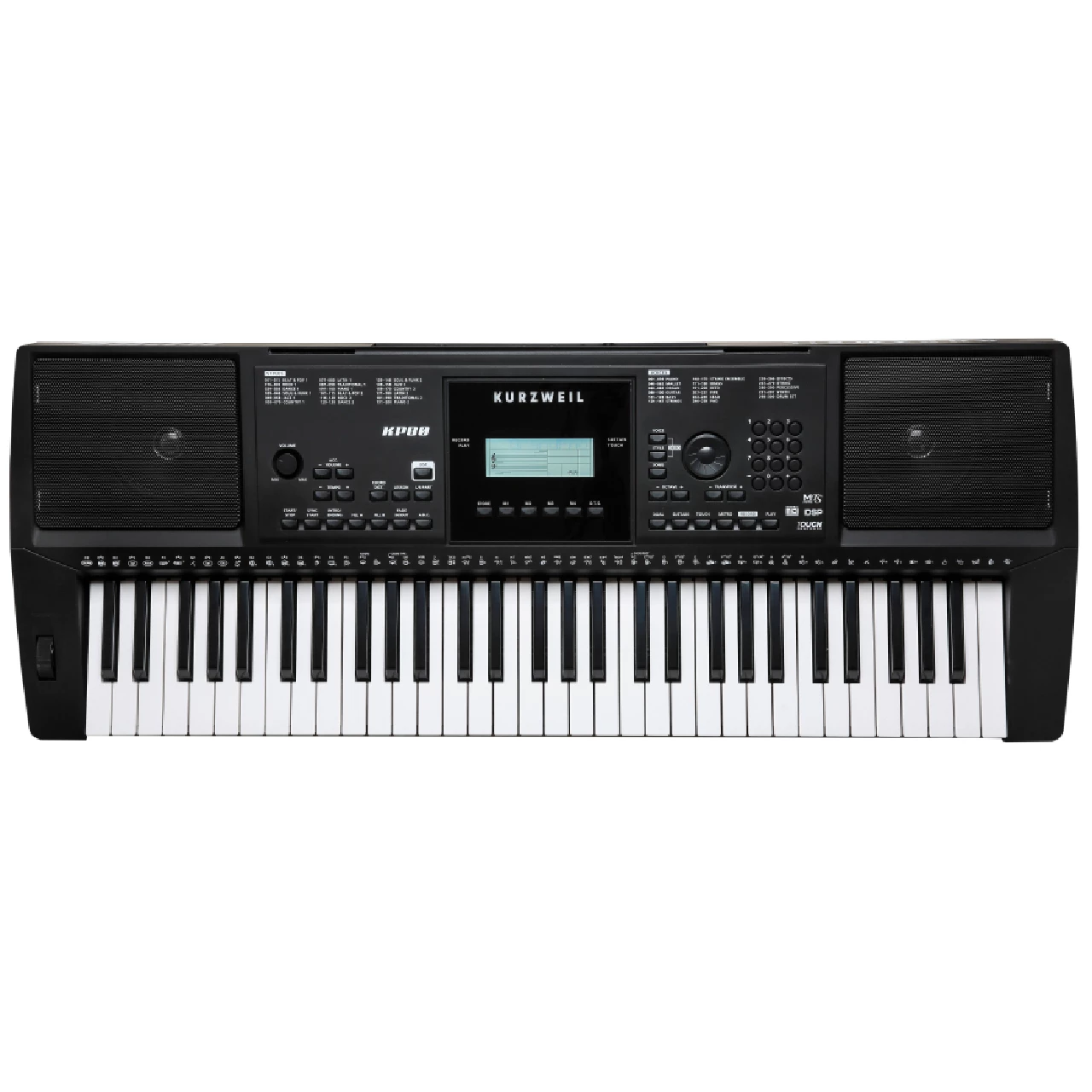 Синтезатор Kurzweil KP80 имеет съемный пюпитр. размещенный в привлекательном корпусе., а также встроенной стереофонической звуковой системой 2×10 Вт. Благодаря питанию от настенного внешнего источника питания или аккумулятора, вы можете использовать синтезатор как дома, так и в портативном режиме.